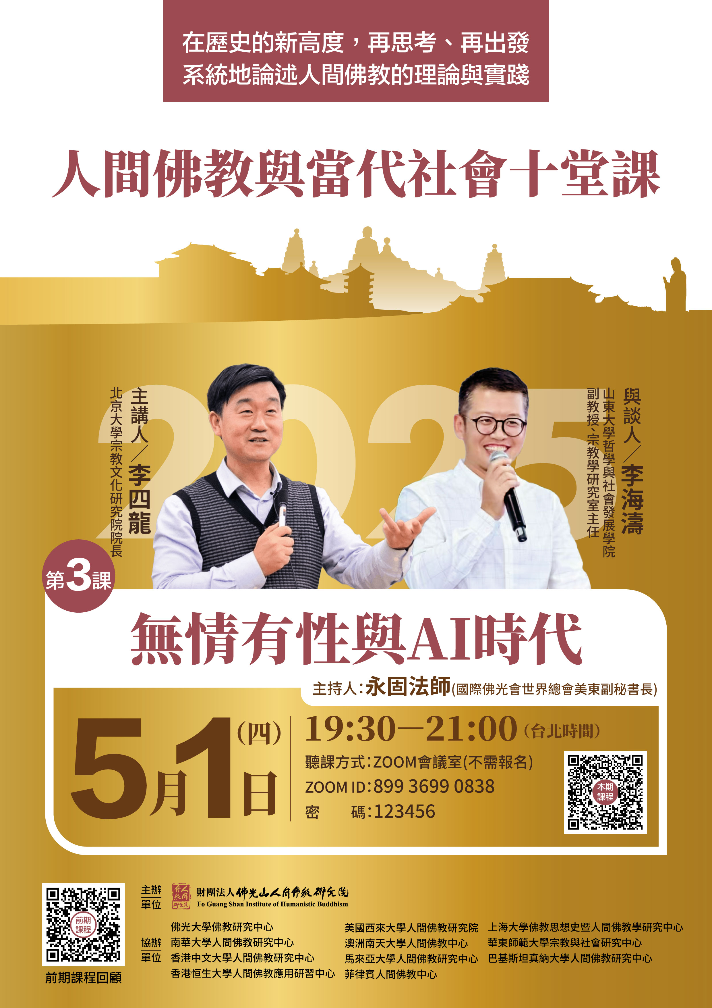 「人間佛教與當代社會十堂課」第三堂課來了!5/1主題「無情有性與AI時代」,邀請您線上共學,歡迎分享!