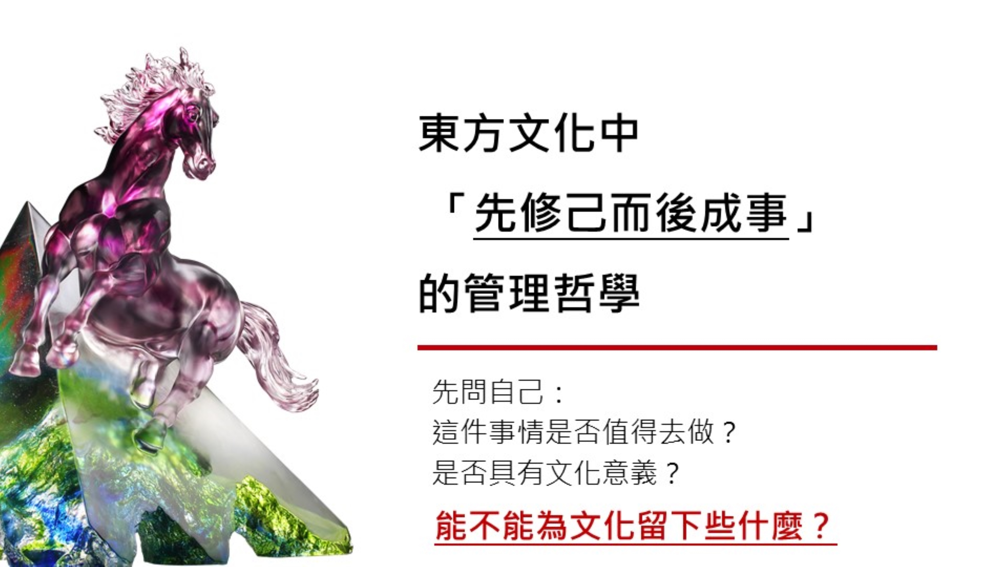 本場演講闡述了傳統文化的善美精神,如何形塑出具人文關懷的、永續傳承精神的、慈悲利他的企業文化,結合現代管理實務的成功經驗,為當代管理學提供了珍貴的案例。