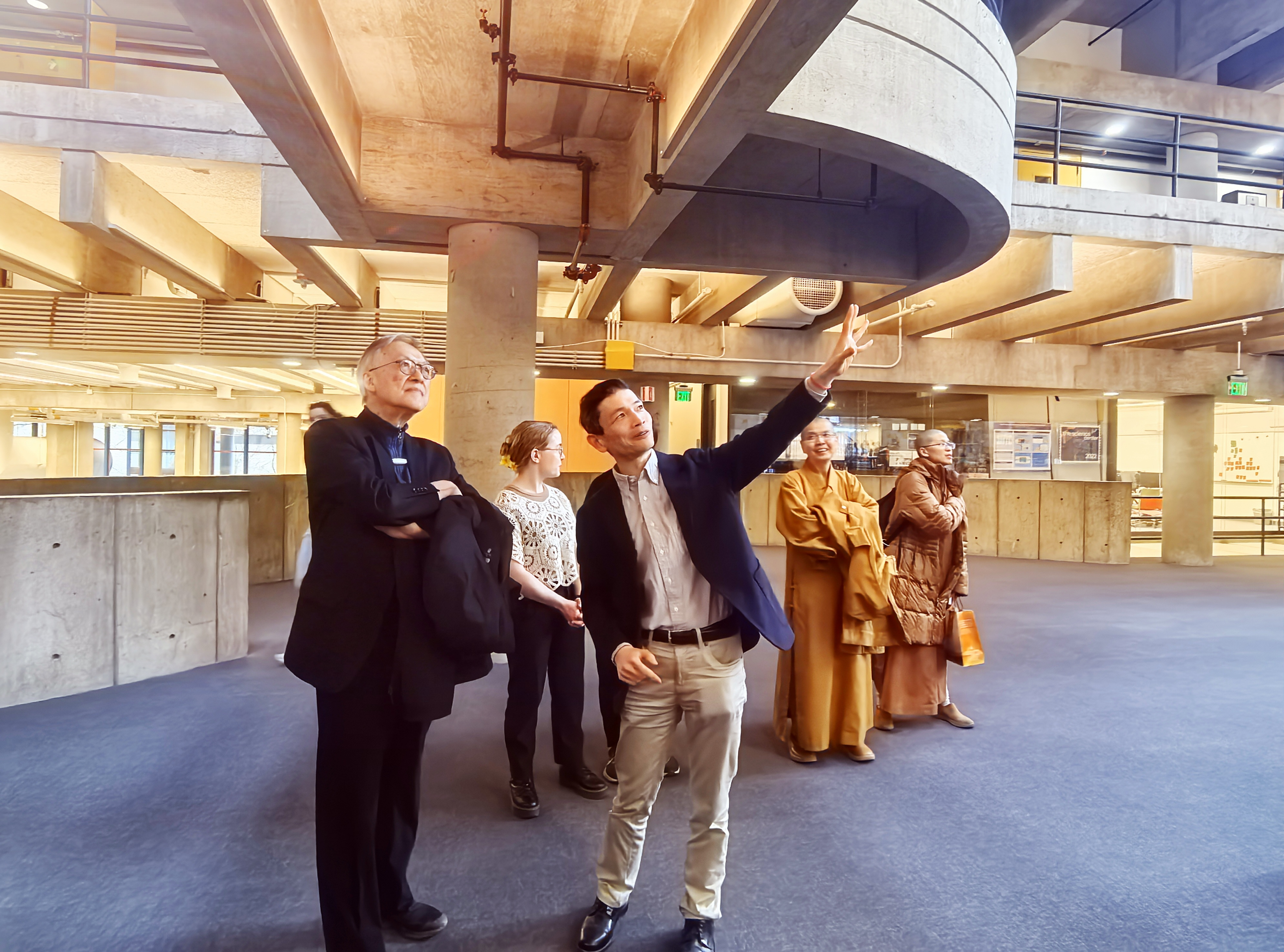 交流期間,師生互動持續展開。生物科學系特聘講座教授Dr. Yui Suzuki帶領學生介紹由Chao Foundation捐建之科學大樓設施;心理學副教授Dr. Stephen Chen分享「知足」研究,並提問佛法如何協助學生安頓身心。妙光法師以星雲大師「欲望的八個層次」回應,說明修行於現實處境中的調適作用。