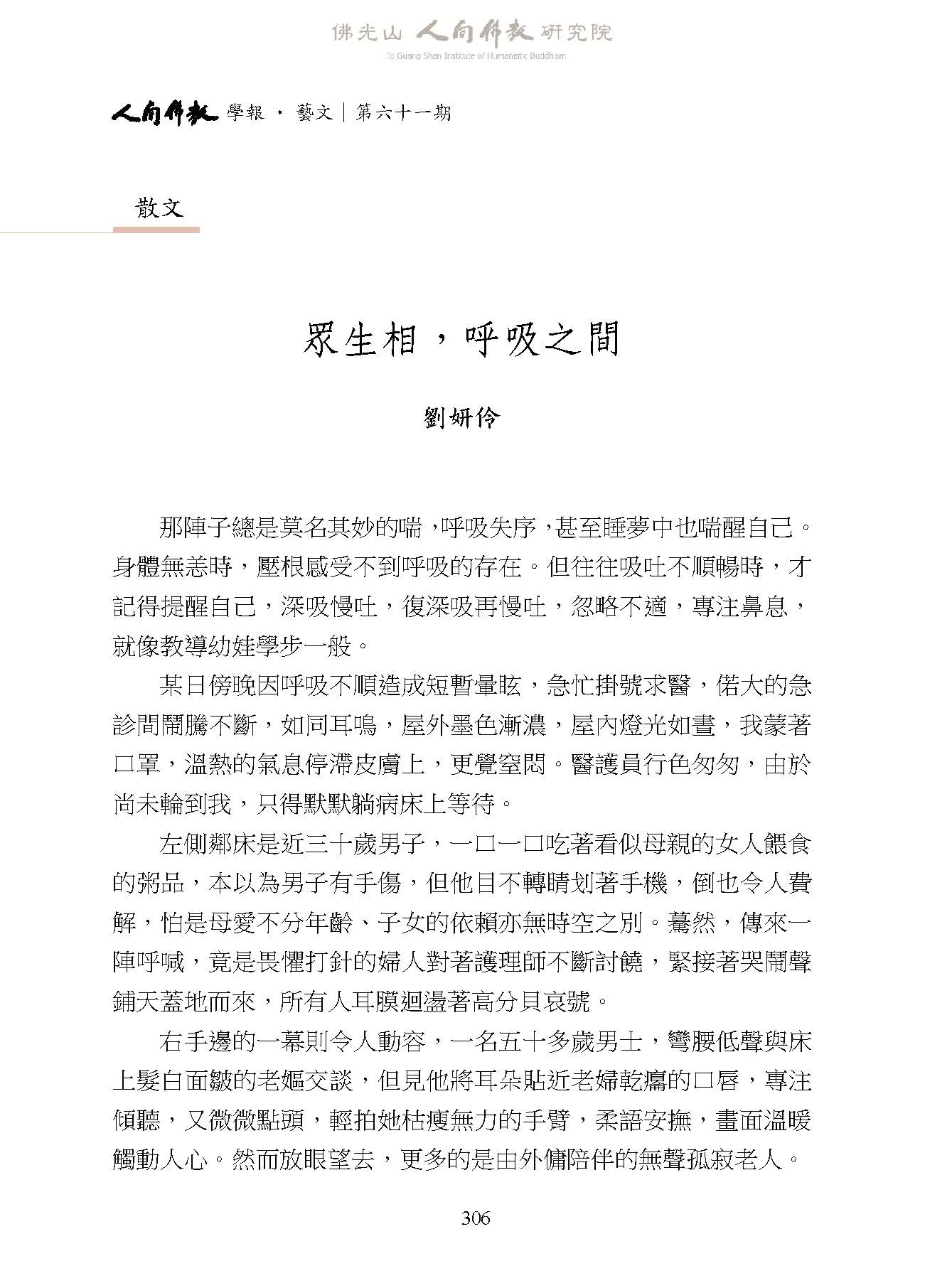 《人間佛教學報‧藝文》第61期