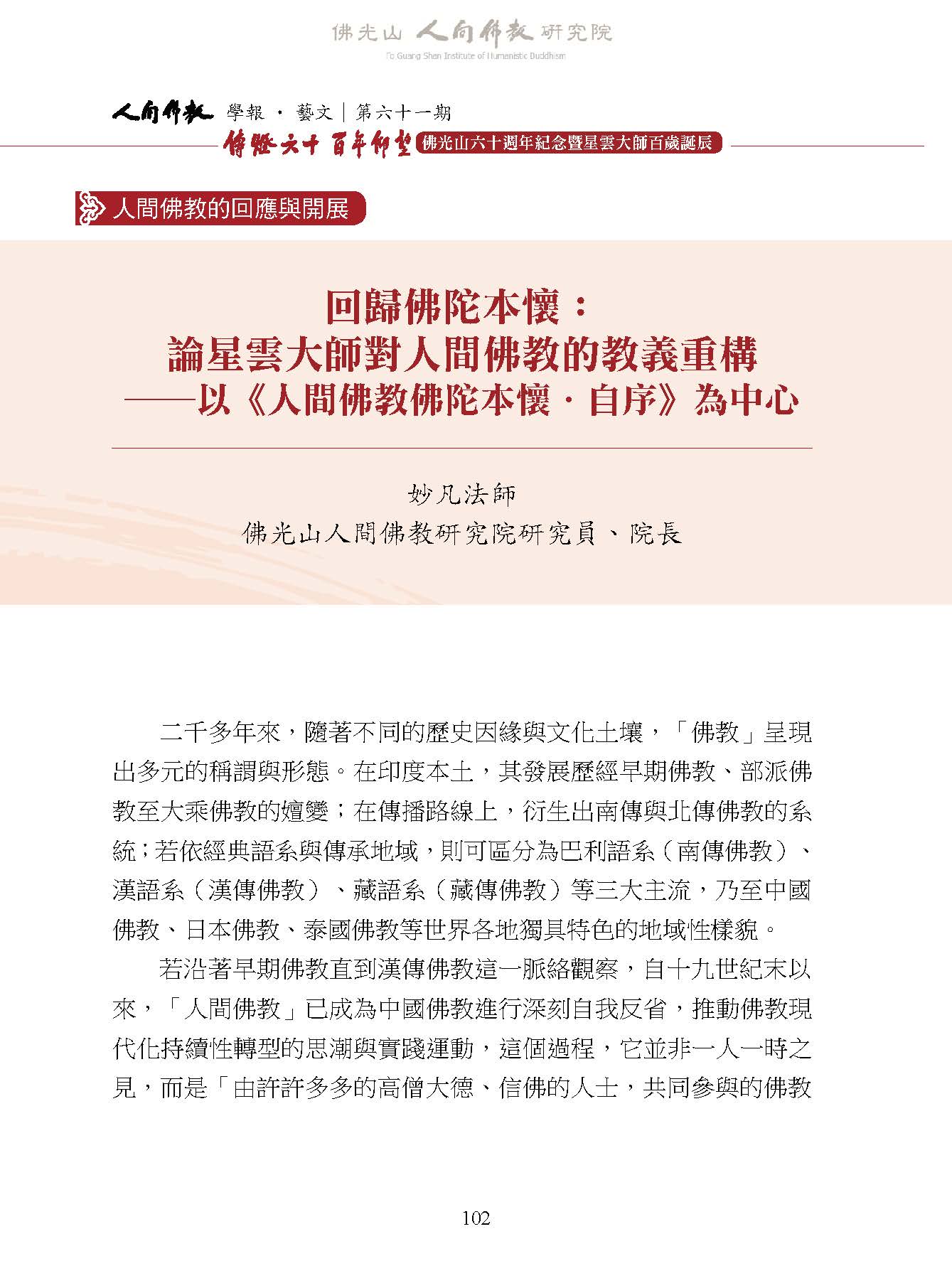 《人間佛教學報‧藝文》第61期
