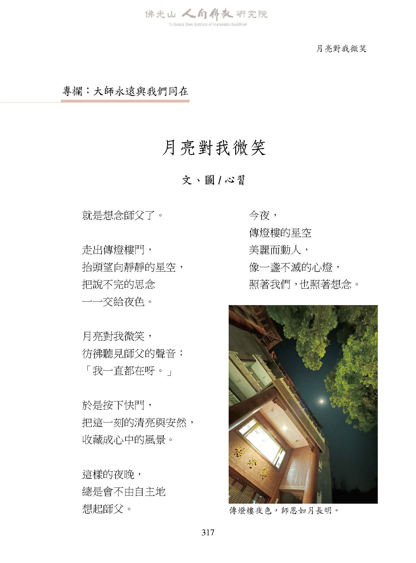 文、圖/ 心習:〈月亮對我微笑〉,收入妙凡、蔡孟樺主編:《人間佛教學報‧藝文》第61期,高雄:財團法人佛光山人間佛教研究院,2026年 01月,頁317。