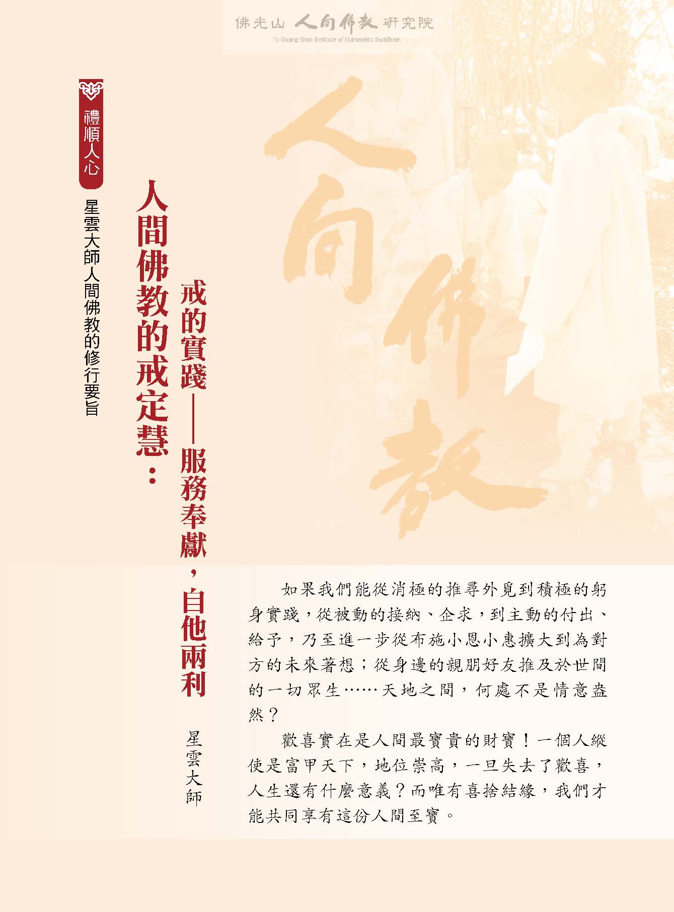 星雲大師:〈人間佛教的戒定慧:戒的實踐—服務奉獻,自他兩利〉,收入妙凡、蔡孟樺主編:《人間佛教學報‧藝文》第62期,高雄:財團法人佛光山人間佛教研究院,2026年 03月,頁38-65。
