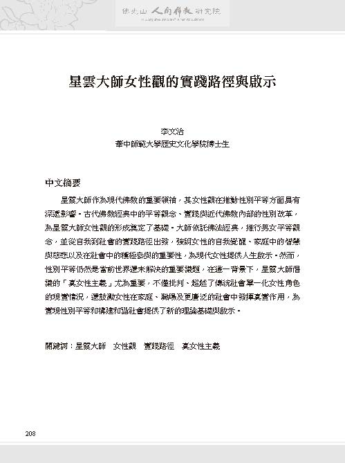 李文治:〈星雲大師女性觀的實踐路徑與啟示〉,收入妙凡、李利安總主編:《2024人間佛教青年寫作論文集》,2025年 11月,頁208-239。