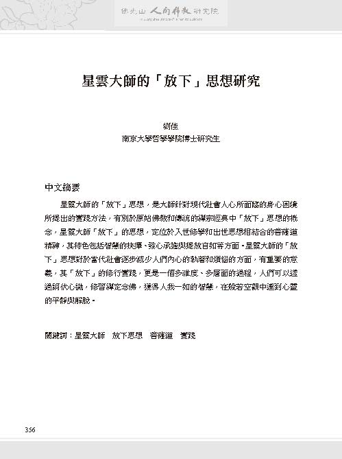劉佳:〈星雲大師的「放下」思想研究〉,收入妙凡、李利安總主編:《2024人間佛教青年寫作論文集》,2025年 11月,頁356-383。