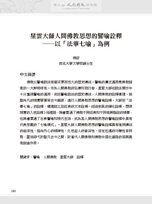 星雲大師人間佛教思想的譬喻詮釋—以「法華七喻」為例