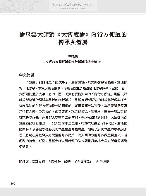 論星雲大師對《大智度論》內行方便道的傳承與發展