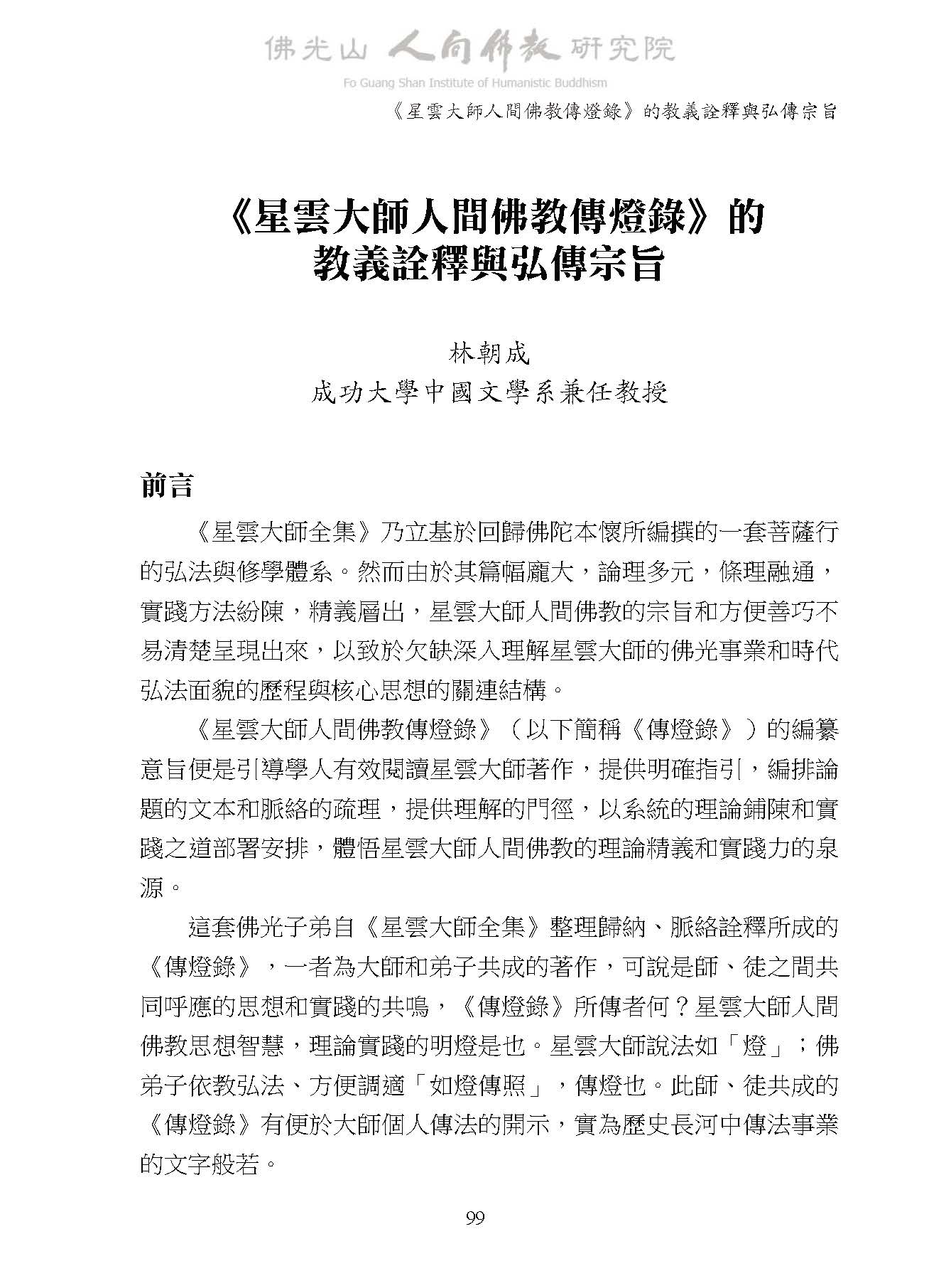 林朝成:〈《星雲大師人間佛教傳燈錄》的教義詮釋與弘傳宗旨〉,收入妙凡、蔡孟樺主編:《人間佛教學報‧藝文》第60期,高雄:財團法人佛光山人間佛教研究院,2025年 11月,頁99-105。