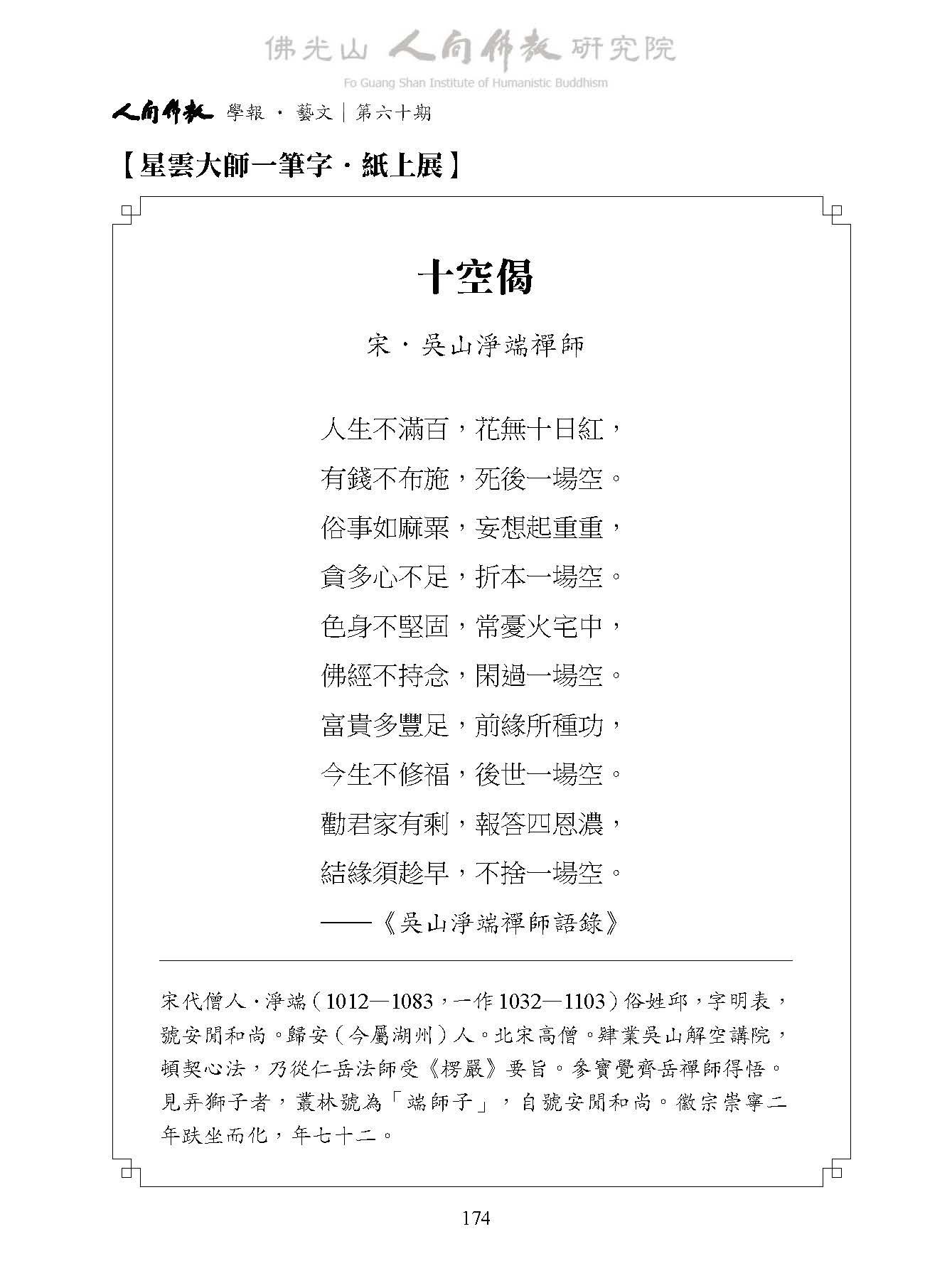 吳山淨端禪師:〈【星雲大師一筆字.紙上展】〉,收入妙凡、蔡孟樺主編:《人間佛教學報‧藝文》第60期,高雄:財團法人佛光山人間佛教研究院,2025年 11月,頁174-175。
