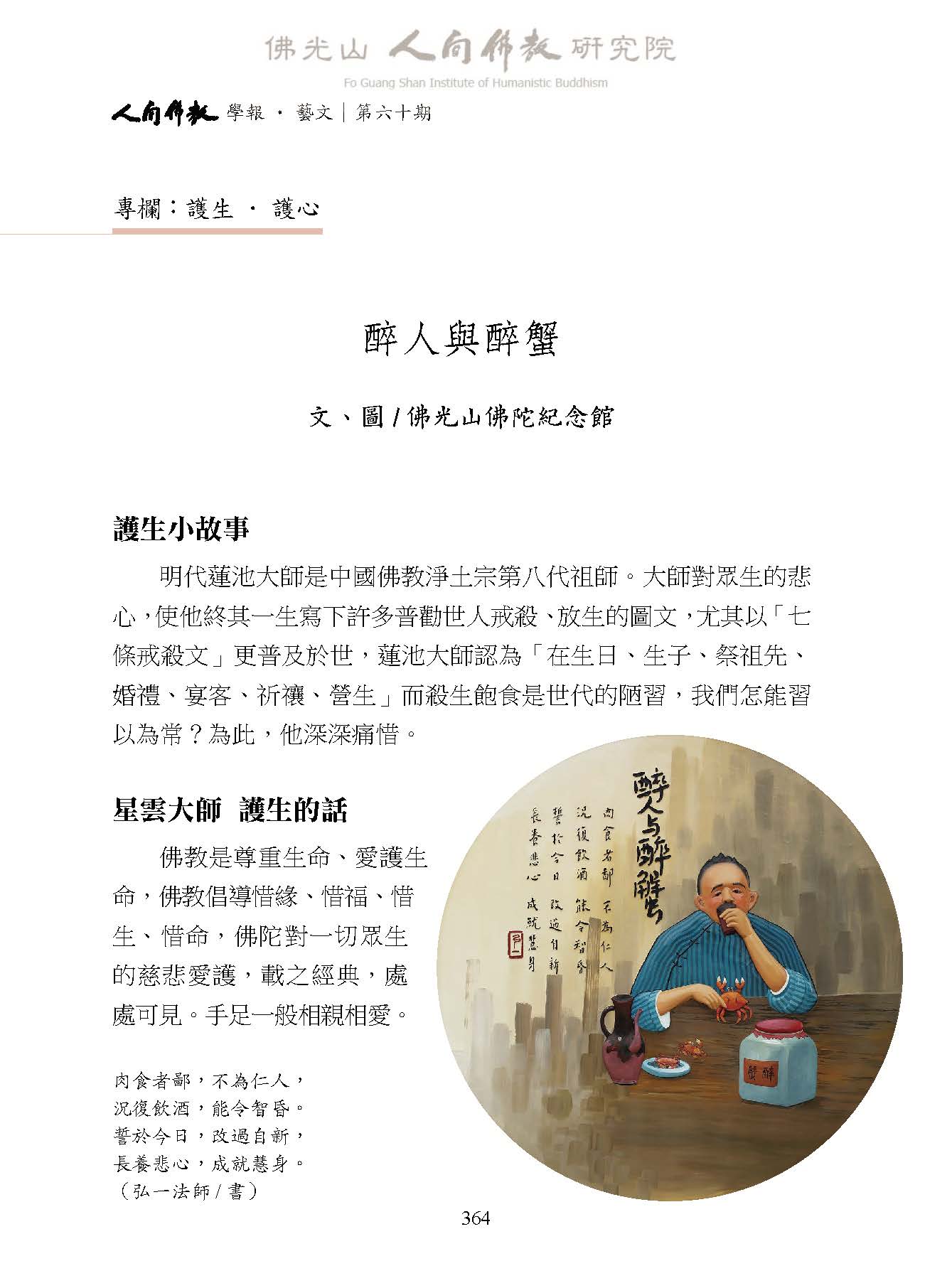 佛光山佛陀紀念館:〈醉人與醉蟹〉,收入妙凡、蔡孟樺主編:《人間佛教學報‧藝文》第60期,高雄:財團法人佛光山人間佛教研究院,2025年 11月,頁364。
