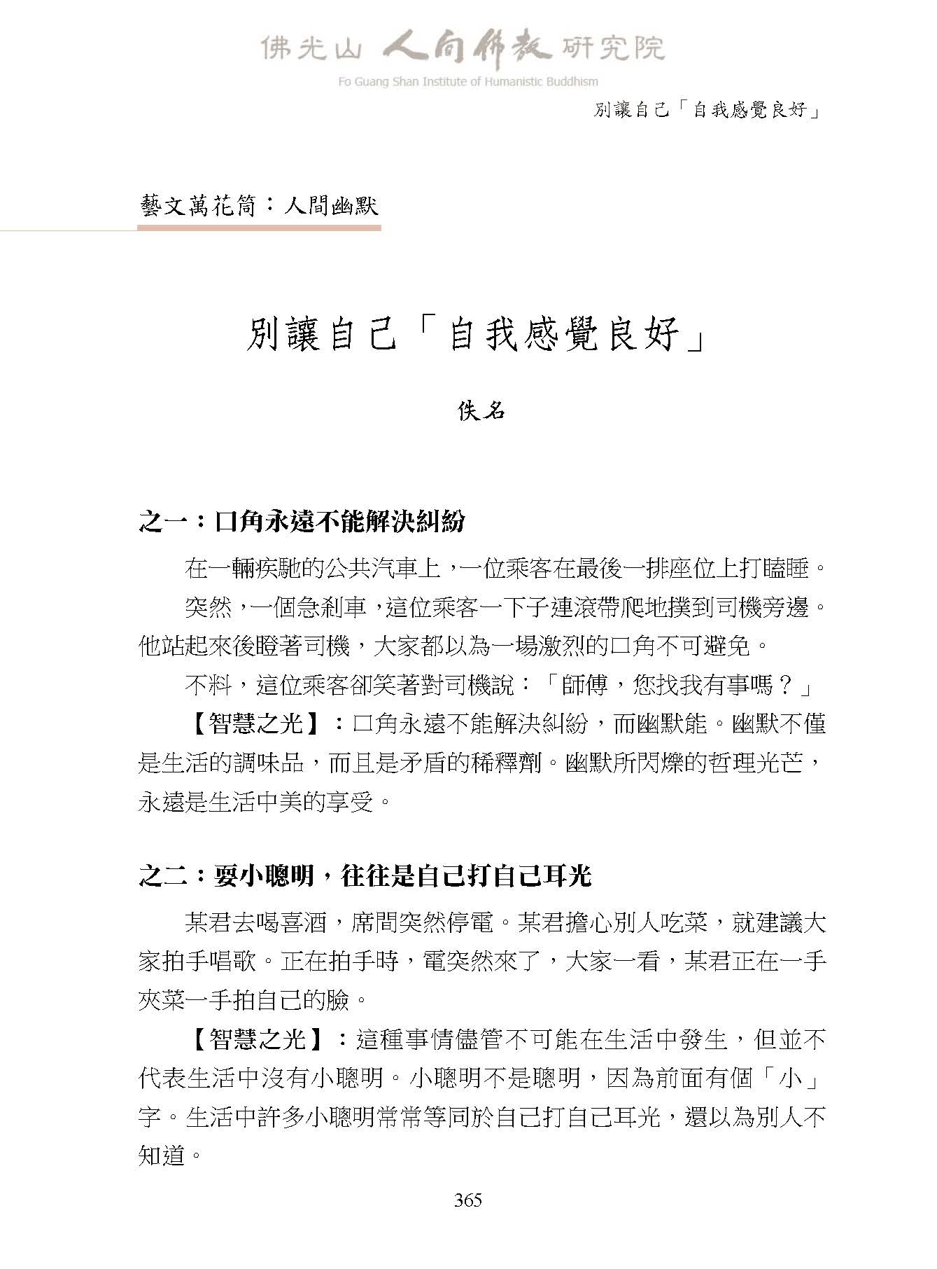 佚名:〈別讓自己「自我感覺良好」〉,收入妙凡、蔡孟樺主編:《人間佛教學報‧藝文》第60期,高雄:財團法人佛光山人間佛教研究院,2025年 11月,頁365-367。