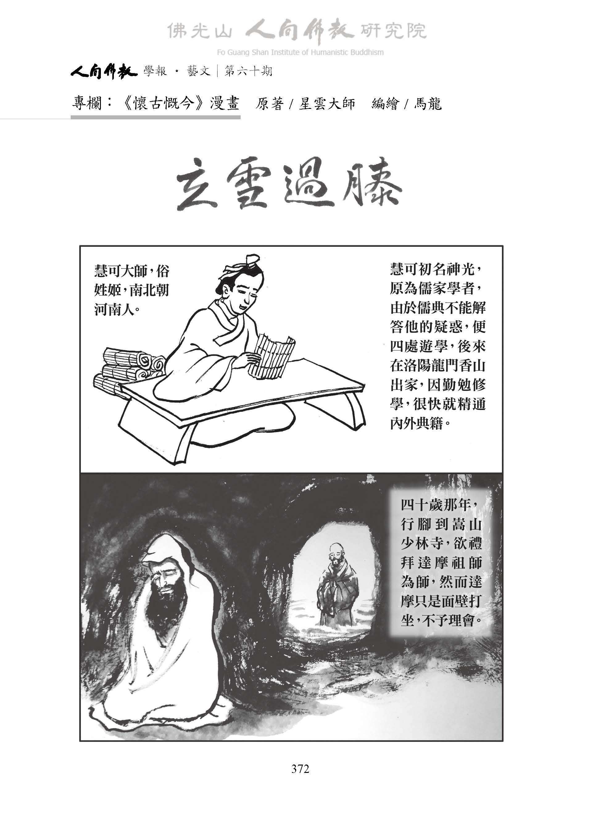 星雲大師:〈立雪過膝〉,收入妙凡、蔡孟樺主編:《人間佛教學報‧藝文》第60期,高雄:財團法人佛光山人間佛教研究院,2025年 11月,頁372-377。